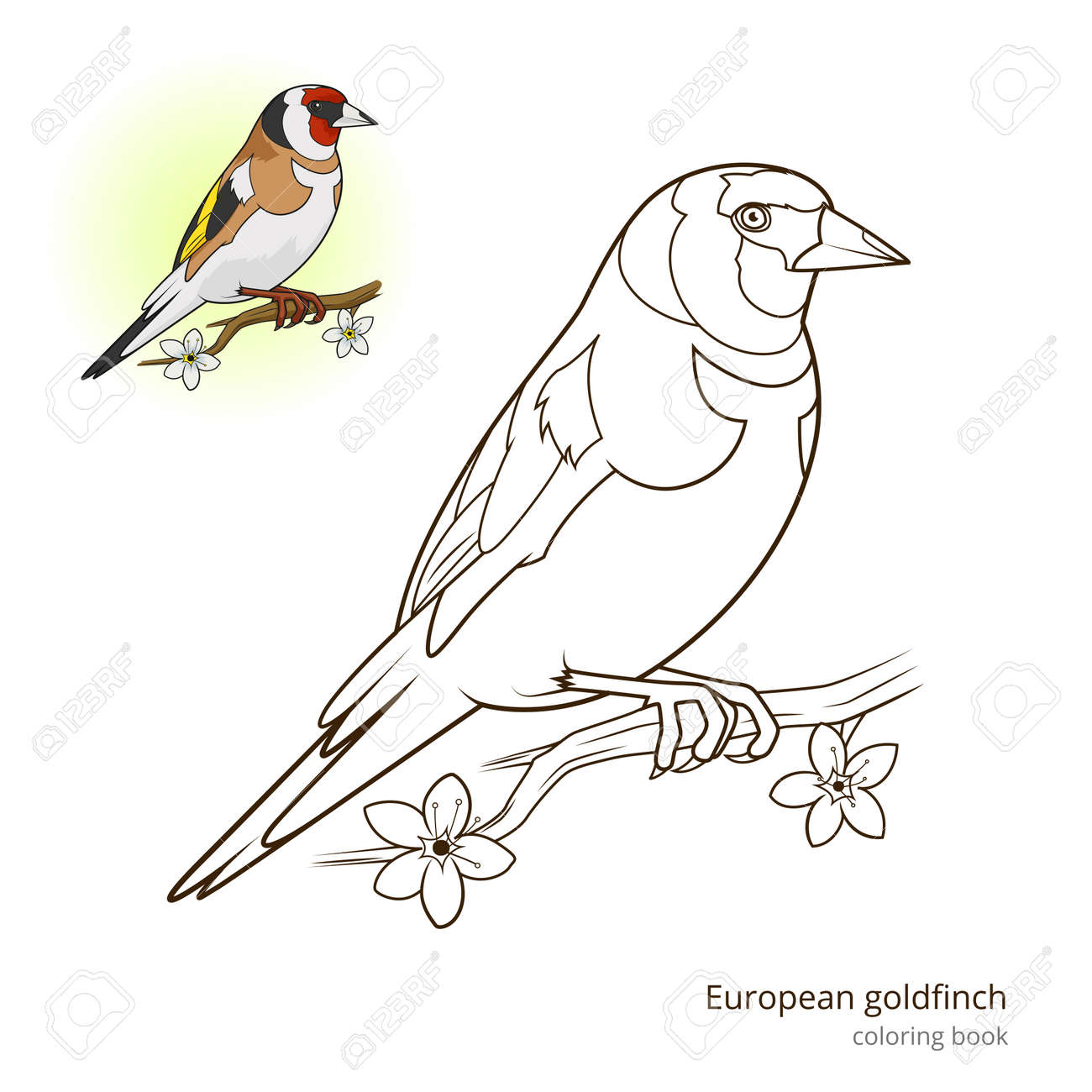 Stieglitz Vogel Lernen Vogel Lernspiel Malbuch Vektor Illustration
