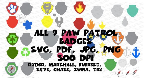 Alle 9 Pfote Patrol Abzeichen Skye Ryder Everest Chase Marshall Felsigen Trummern Kostume Tracker Svg Png Jpg Pdf Digital Download