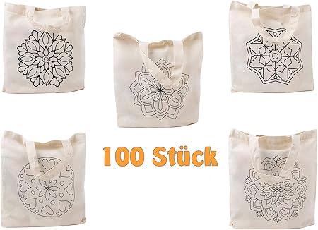 Cottonbagjoe Kleine Stofftasche Zum Ausmalen Bedruckt Mandalas 5 Motive Kurze Henkel Din A4 Geschenktasche Jutebeutel Baumwolltasche