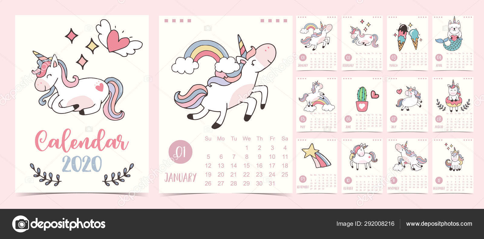 Doodle Pastel Calendar Set 2020 With Unicorn Rainbow Ice Cream F 292008216