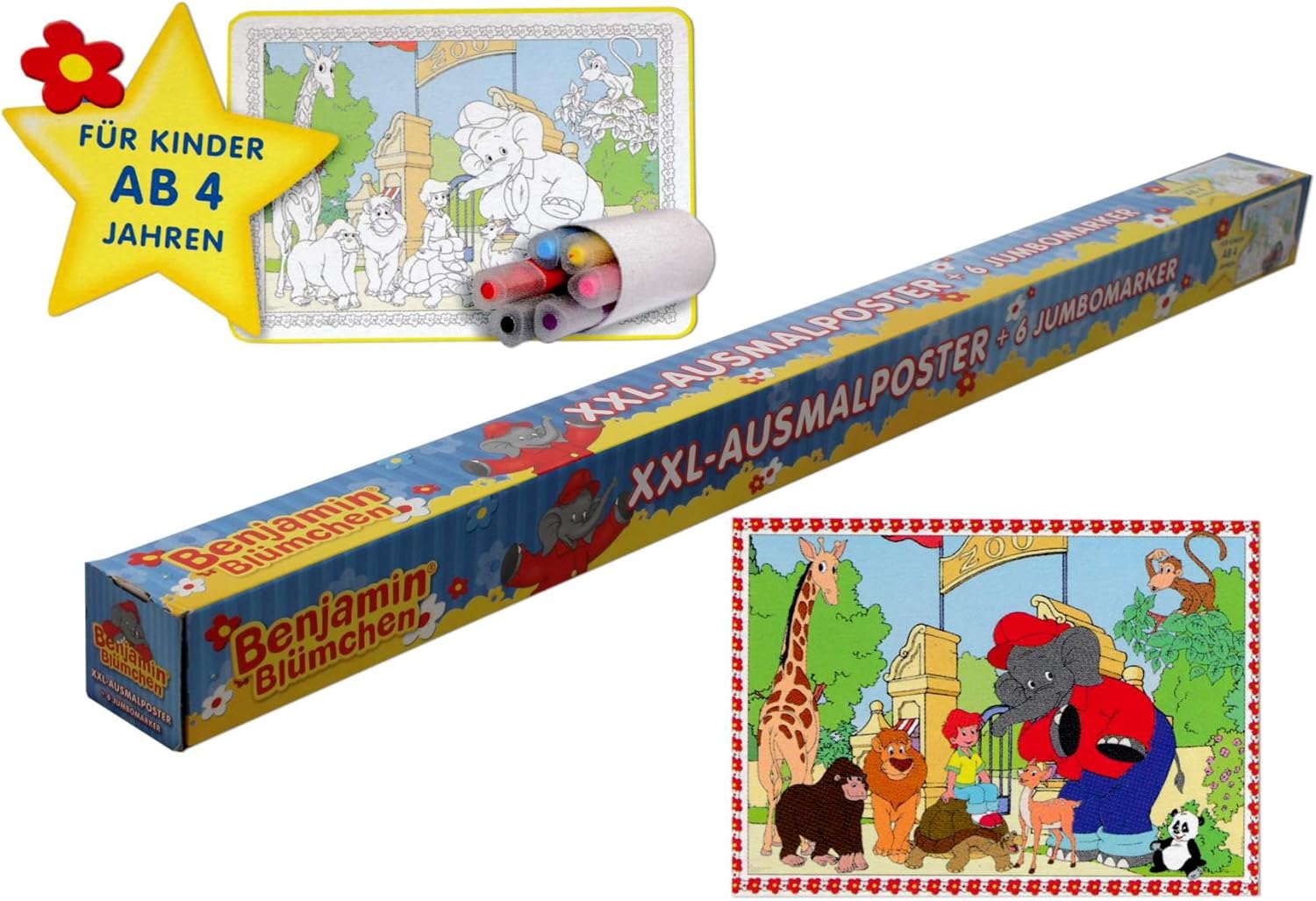 Posten Borse Xxl Ausmalposter Mit 6 Jumbo Marker Motiv Benjamin Blumchen